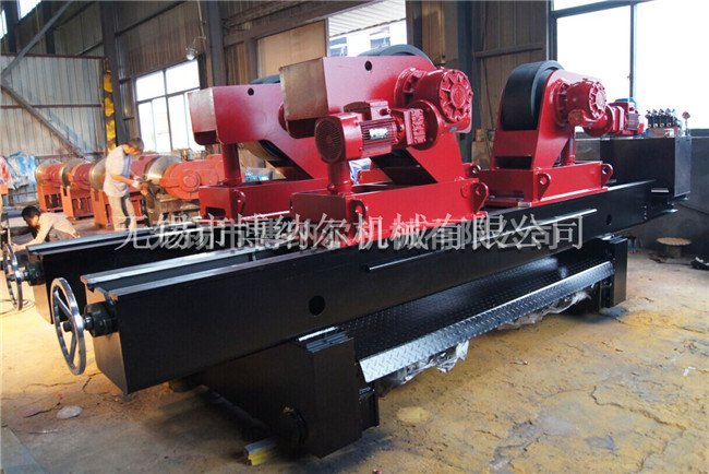 滾輪架可分為自調式和可調式兩種形式。用于圓柱形筒體的焊接、拋光、襯膠及裝配,自調式滾輪架可根據筒體大小自行調節;可調式滾輪架可通過絲桿調節或螺釘分檔調節,采用交流變頻控制,線速度為數字顯示,先進可靠。本廠還可根據用戶需要設計定制各種類型的滾輪架。